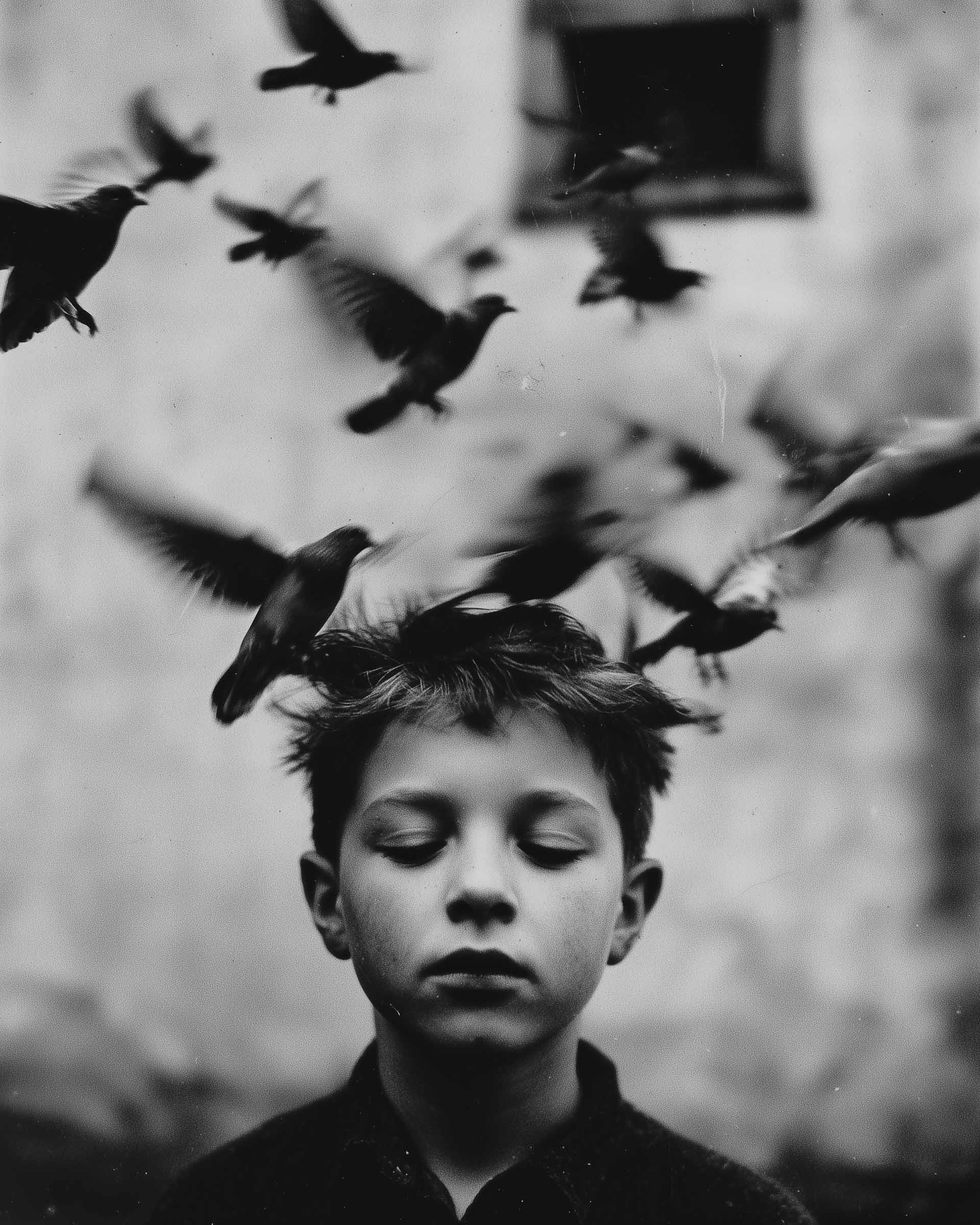 With practice, experience, and trial and error, I understood that I needed to find in AI something aligned with what I had always done and with my own vision. The images had to carry my obsessions and fears: childhood, old age, innocence, loss, memory, humanity, silence, the past, hope, pain, grief.
